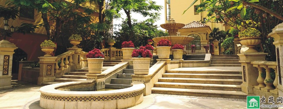 依整個(gè)二期社區(qū)不同的分區(qū),采用不同主題的園林;營(yíng)造"一會(huì)所--架空層泛會(huì)所,兩個(gè)活動(dòng)中心,八大休閑空間"的最美的西班牙園林;