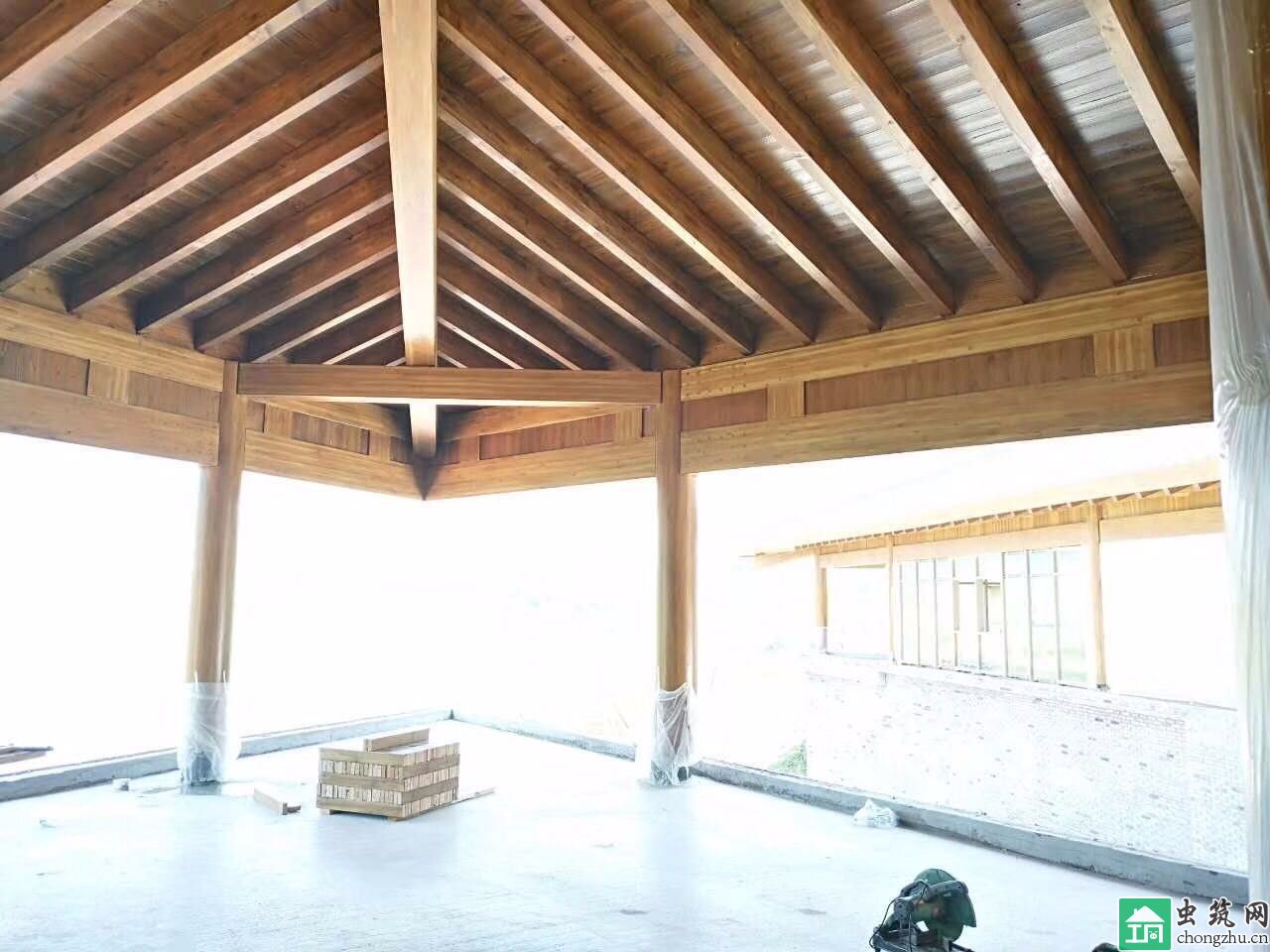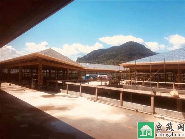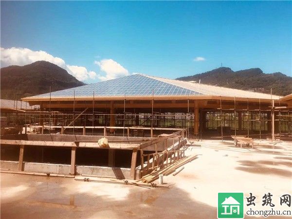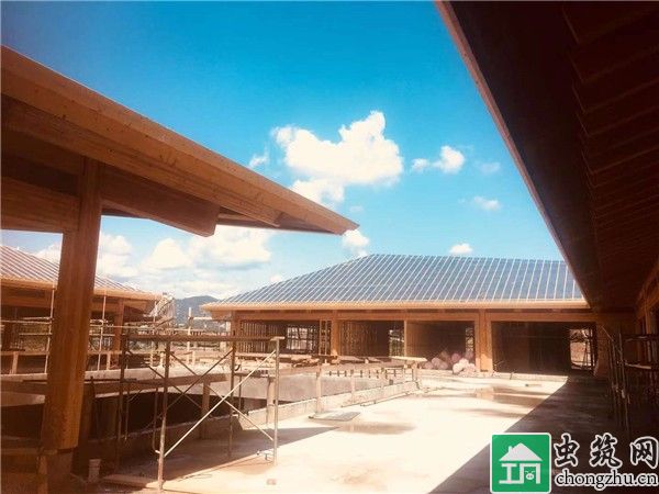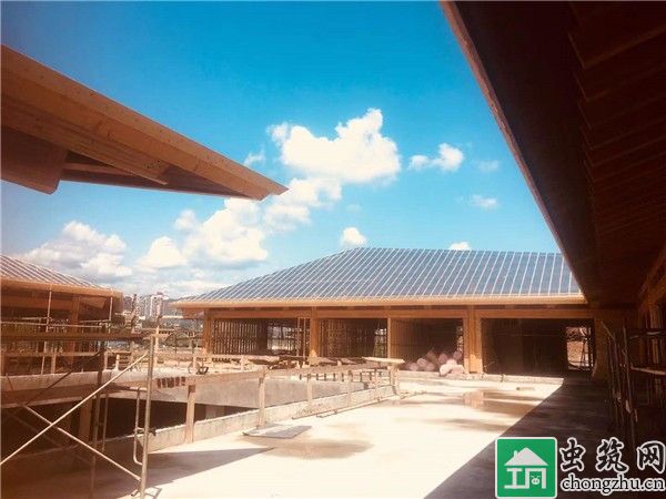 木結(jié)構(gòu)主體工程,主體結(jié)構(gòu)材料為花旗松膠合木,強(qiáng)度等級(jí)為T(mén)CT-24,