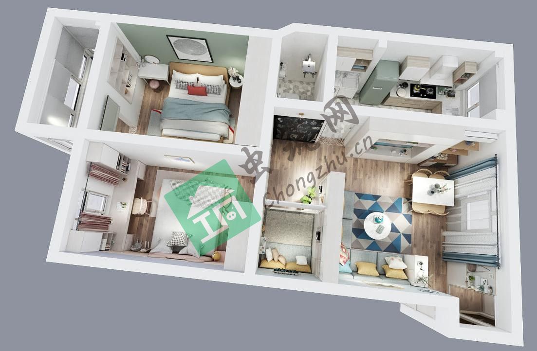 ?本案為改造項目兩室一廳一衛(wèi),業(yè)主需求不多,有兩個小孩(男孩女孩),在滿足兩間居住的情況下,增加一間可變空間即可,餐廳及衛(wèi)生間功能較小,希望能有所改善。