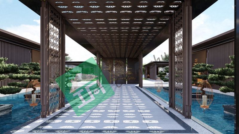 項(xiàng)目設(shè)計(jì)為新中式風(fēng)格,入口用對(duì)稱式的景墻,引導(dǎo)人進(jìn)入其中,打造中式文化空間,示范區(qū)包括樣板間展示,兒童活動(dòng)場(chǎng)所,休憩空間等功能