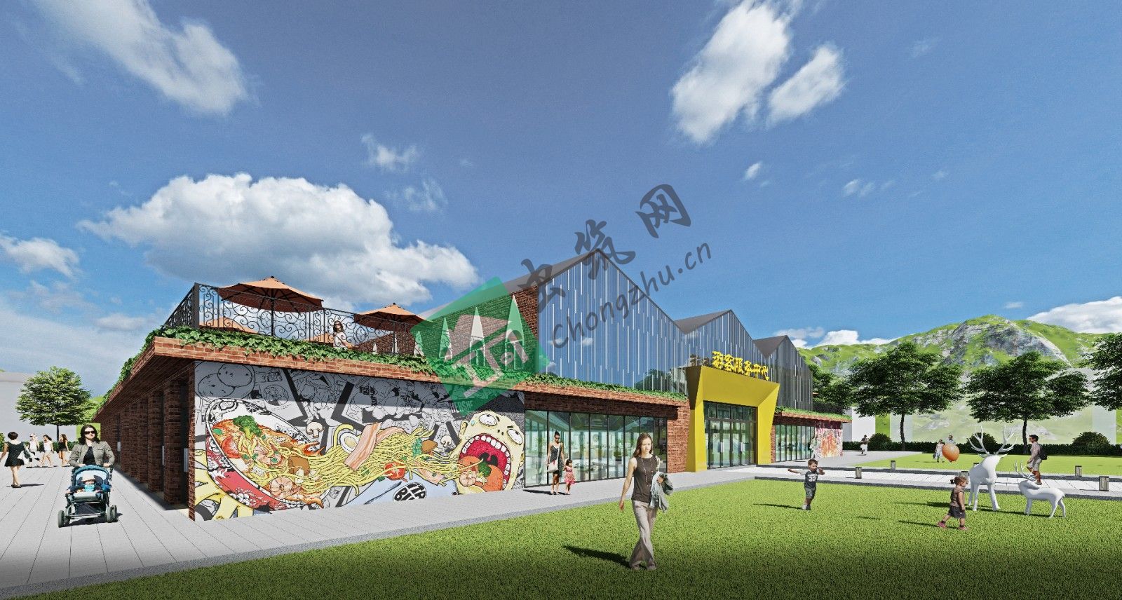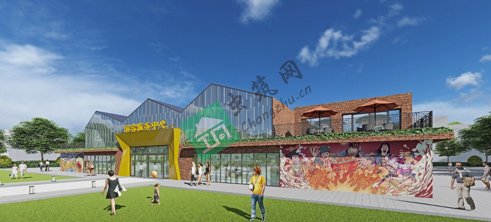 ? ??方案二:外立面做了比較大的改造,加入了一些現(xiàn)代手法,色彩上更明快活潑,賦予建筑一定的活力元素。